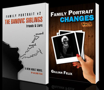 Published January 12, 2014 at 345 × 300 in Banovic Siblings – Friends and Liars, #2 in the Family Portrait Series, by Gillian Felix Double-books ← Previous Next →