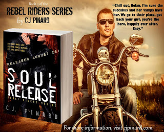 C.J. Pinard has triumphed again with this fantastic fantasy paranormal romance series, Rebel Riders. Soul Release is the third and final instalment of this brilliant urban fantasy, and is released today! I am sorry to see the end of this series as it had me gripped from the beginning to end. The way it is written, the atmosphere created, the flawed characters and general adventure, with mystery, suspense and romance, has certainly made this a 5* read that I hope many of you will enjoy!